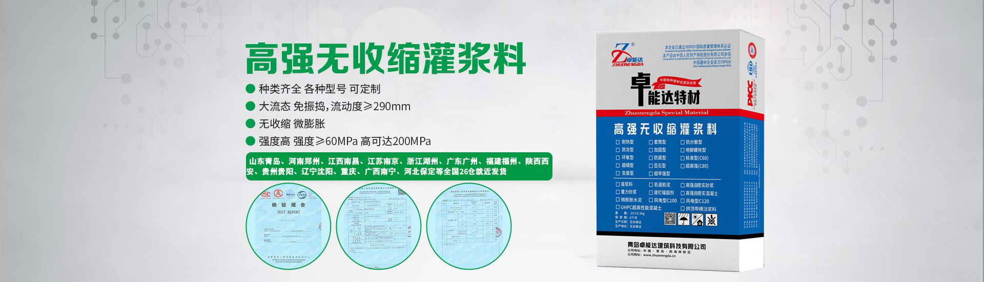 卓能達(dá)目前在河南鄭州、山東青島、江西南昌、江蘇南京、浙江湖州、廣東肇慶、廣東惠州、福建福州、陜西西安、貴州貴陽、遼寧沈陽、重慶、廣西南寧、河北保定、新疆烏魯木齊等均有倉儲中心,形成覆蓋全國的生產(chǎn)和銷售網(wǎng)絡(luò)。